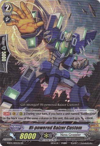 X4 Battleraizer (Kamui's Forerunner Unit. It allows Kamui the Great to gain extra Power when boosting, and then shuffled back into his Deck. Standing Trigger-Stands a Resting Unit)
