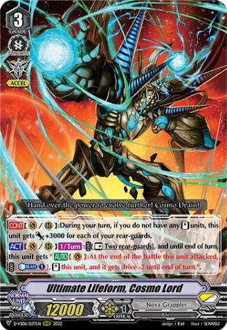 X1 Ultimate Lifeform,Cosmo Lord (Allows Kamui the Great to gain extra power for this unit as his Vanguard with the cost of Unstanding his Rear Guards)